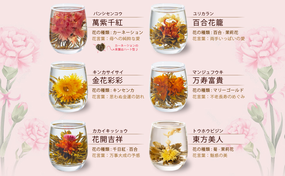 お母さんへ花咲く「10種」工芸茶 About Blooming Tea
