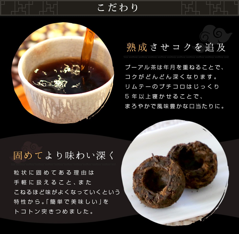 ●商品名:美活習慣 熟成プーアル茶「プチコロ」バリューサイズ ※手作り品の為、多少大きさにバラつきがあります。