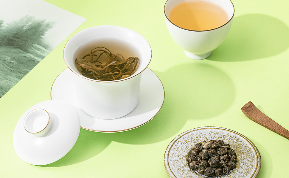 おすすめ茶器:磁器蓋碗、磁器ポット、耐熱ガラス蓋碗、耐熱ガラス急須