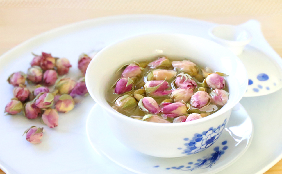 バラの蕾を新鮮なうちに加工し、香りを閉じ込めた最高級のバラ茶が疲れた体を隅々まで癒します。