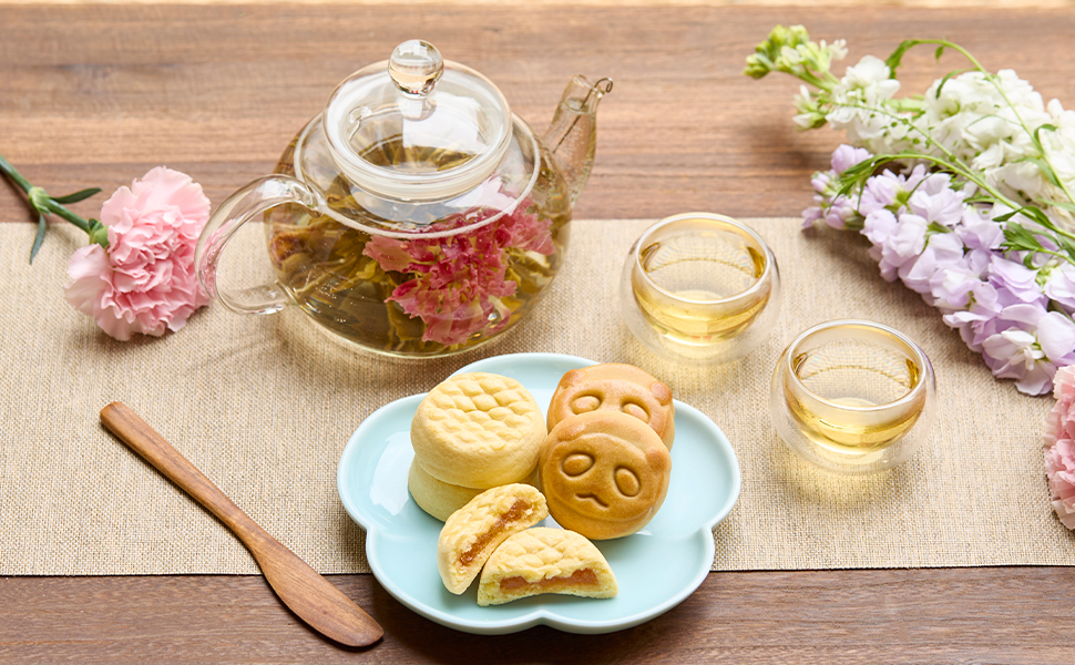 | 内 容 量 | ・花咲く工芸茶(10種のうちいずれか)1個 ・パンダ月餅 1個 ・パイナップルケーキ 1個 ・お茶の淹れ方のしおり 1枚 |