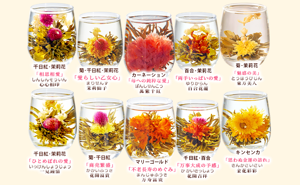花咲く工芸茶10種の中から、ランダムで1種をお届けします。
