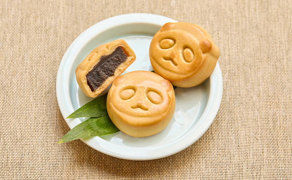 しっとり食感の生地と甘すぎない上質な黒糖ベースの餡をパンダのほっこり笑顔とご一緒に。