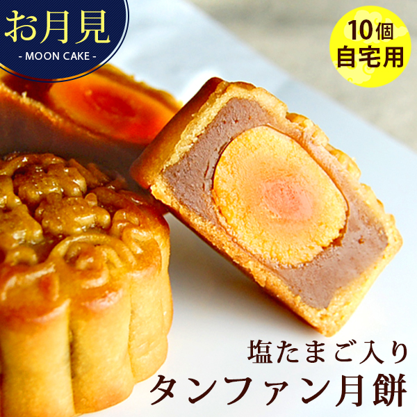 月餅 中秋節限定 十五夜 食べ物 2025 自宅用 鹹蛋 蛋黄 塩たまご入りタンファン月餅 10個セット (簡易包装) 横浜中華街 菓子