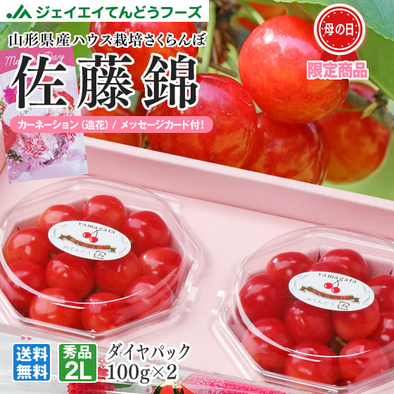 母の日 ギフト さくらんぼ 2025 佐藤錦 2L玉 秀品 100g×2 山形県産 ダイヤパック JA 産地直送 mc01