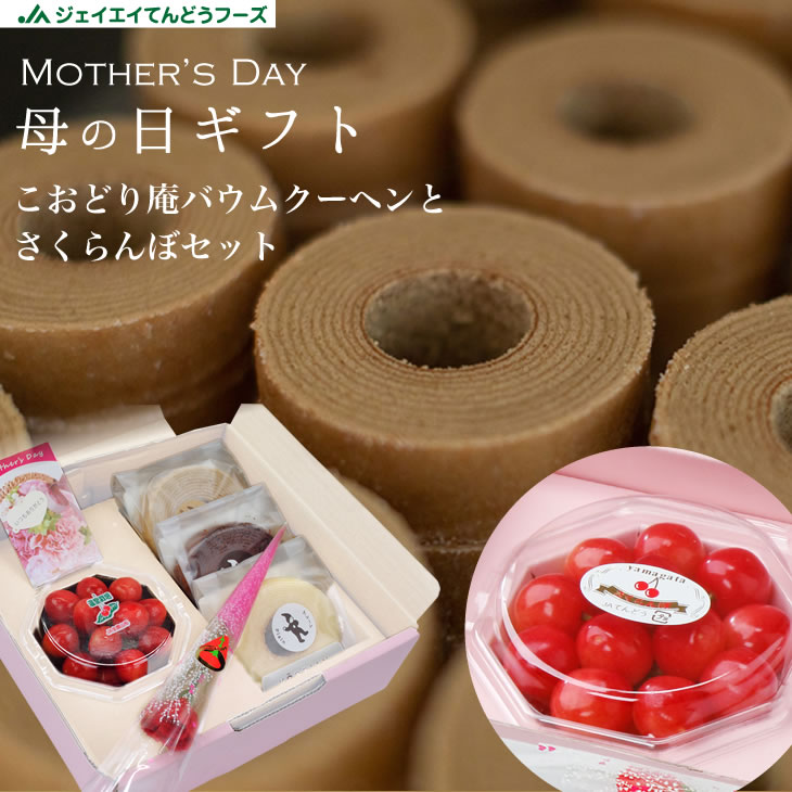 母の日 ギフト さくらんぼ&こおどり庵バームクーヘンギフト 佐藤錦 道の駅サンピュア カード お花付き