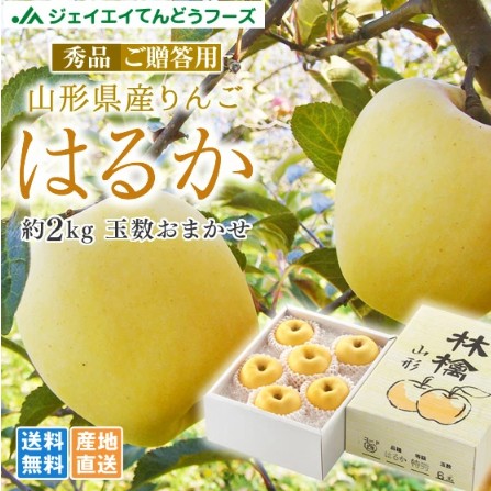 ギフト 送料無料 りんご JAてんどう 山形県産りんごはるか 約2kg(玉数おまかせ) ※一部地域は別途送料追加 のし対応 糖度15度以上 贈答用 ap37