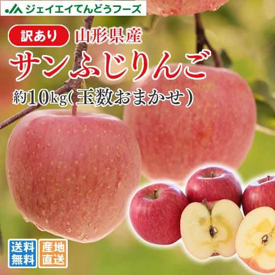 りんご 訳あり サンふじ 約10kg(玉数おまかせ) リンゴ ご自宅用 山形県産 林檎 山形 (一部地域別途送料) 順次出荷 ap13