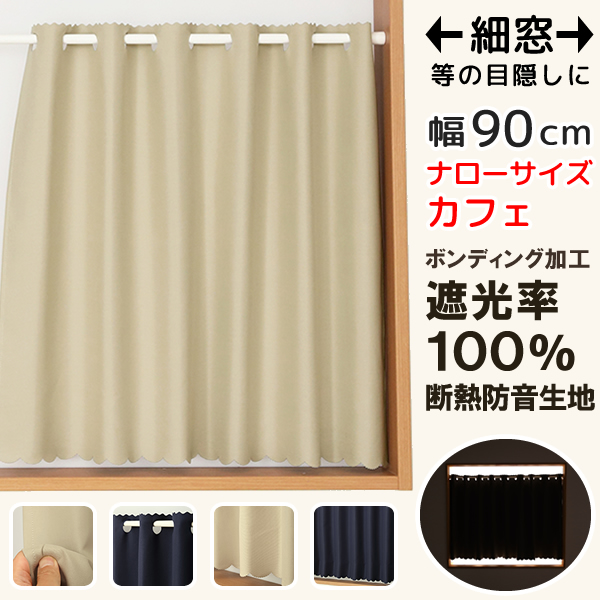 カフェカーテン 細幅 遮光1級 遮光率100% 完全遮光生地 断熱 遮熱 省エネ 防音生地 ボンディング加工 縦長 幅90cm 1枚入 送料無料 在庫品 メール便可(1枚まで)
