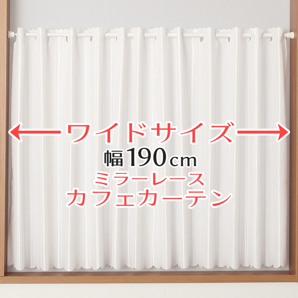 カフェカーテン レース ワイドサイズ 幅広 ミラー 外から見えにくい 防炎 UVカット 小窓 幅190cm×丈50/70/90cm 1枚入 送料無料 在庫品 メール便可(1枚まで)