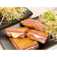 1枚でも満足!重ね揚げなら大満足する厚めのチョップド(赤丸)ハムです。