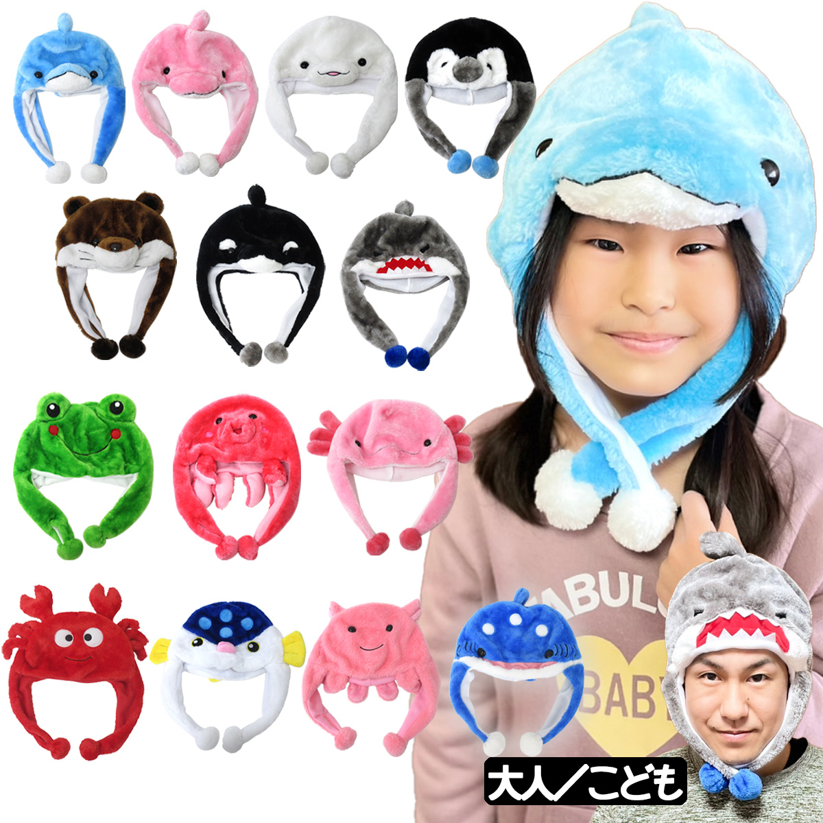 パーティー 着ぐるみ アニマル帽子 かわいい 動物 かぶりもの 水族館の仲間 どうぶつ イベント グッズ コスプレ 変身 なりきり ふわふわ あったか