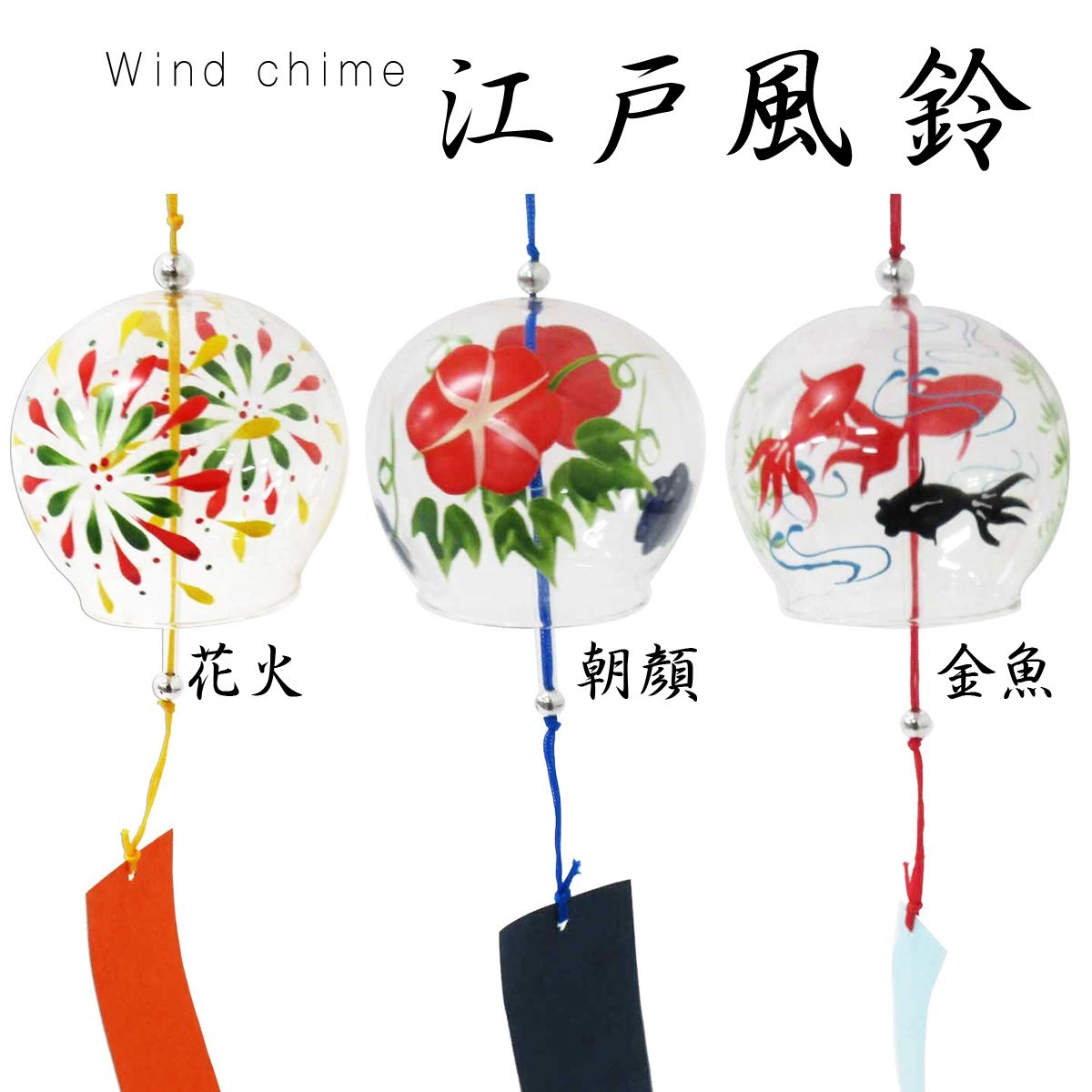 江戸風鈴 ガラス製 花火 朝顔 金魚