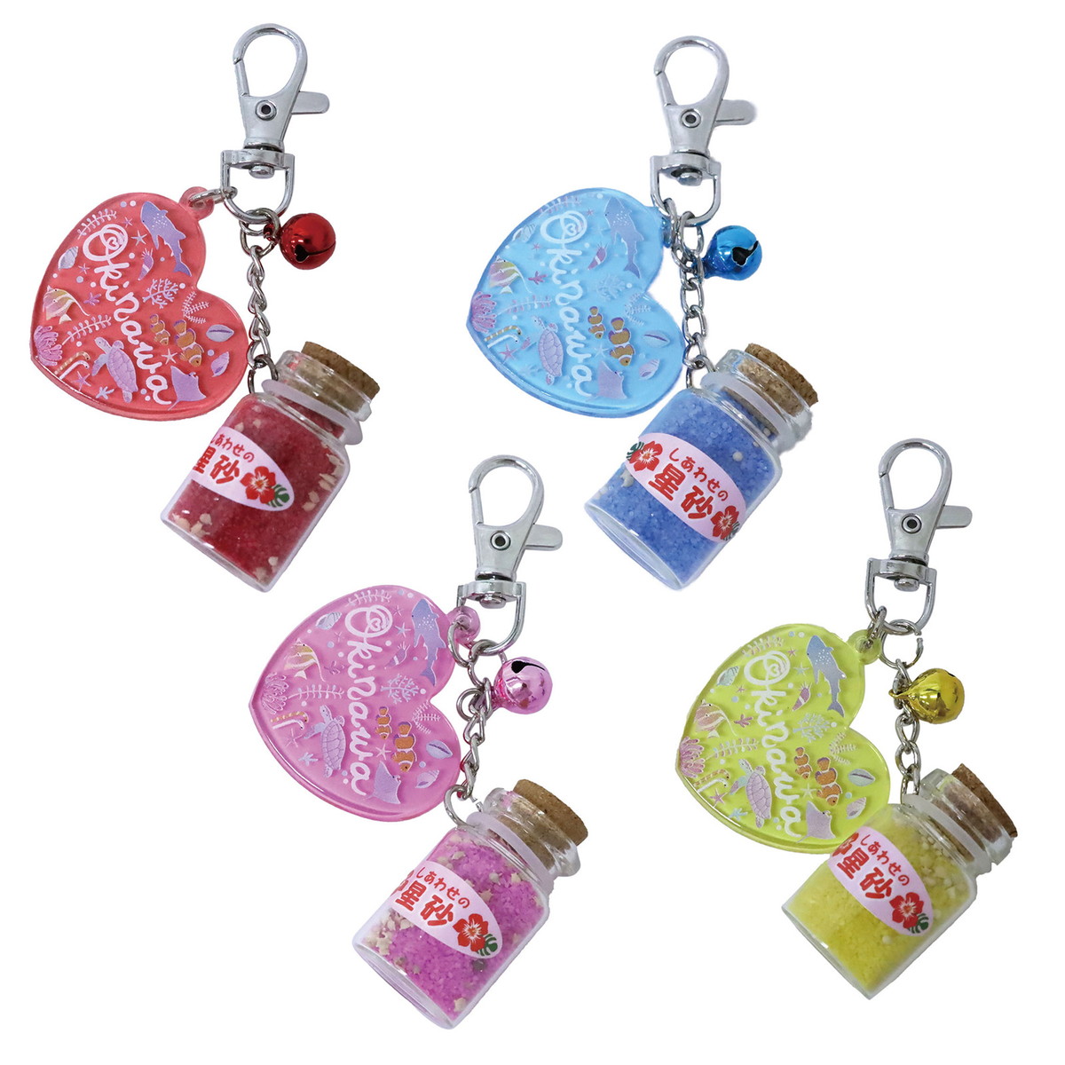 幸運の星砂ボトル キーホルダー 1個 単品 選べる4色 シェルサンド 沖縄 ハート プレート付き キーリング 603-483