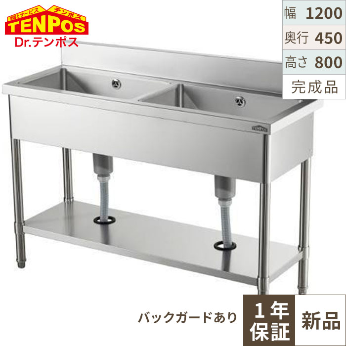 HTB2S-124【テンポス】2槽シンク 幅1200×奥行450×高さ800 バックガード高さ100(mm)【業務用/新品】【送料無料】