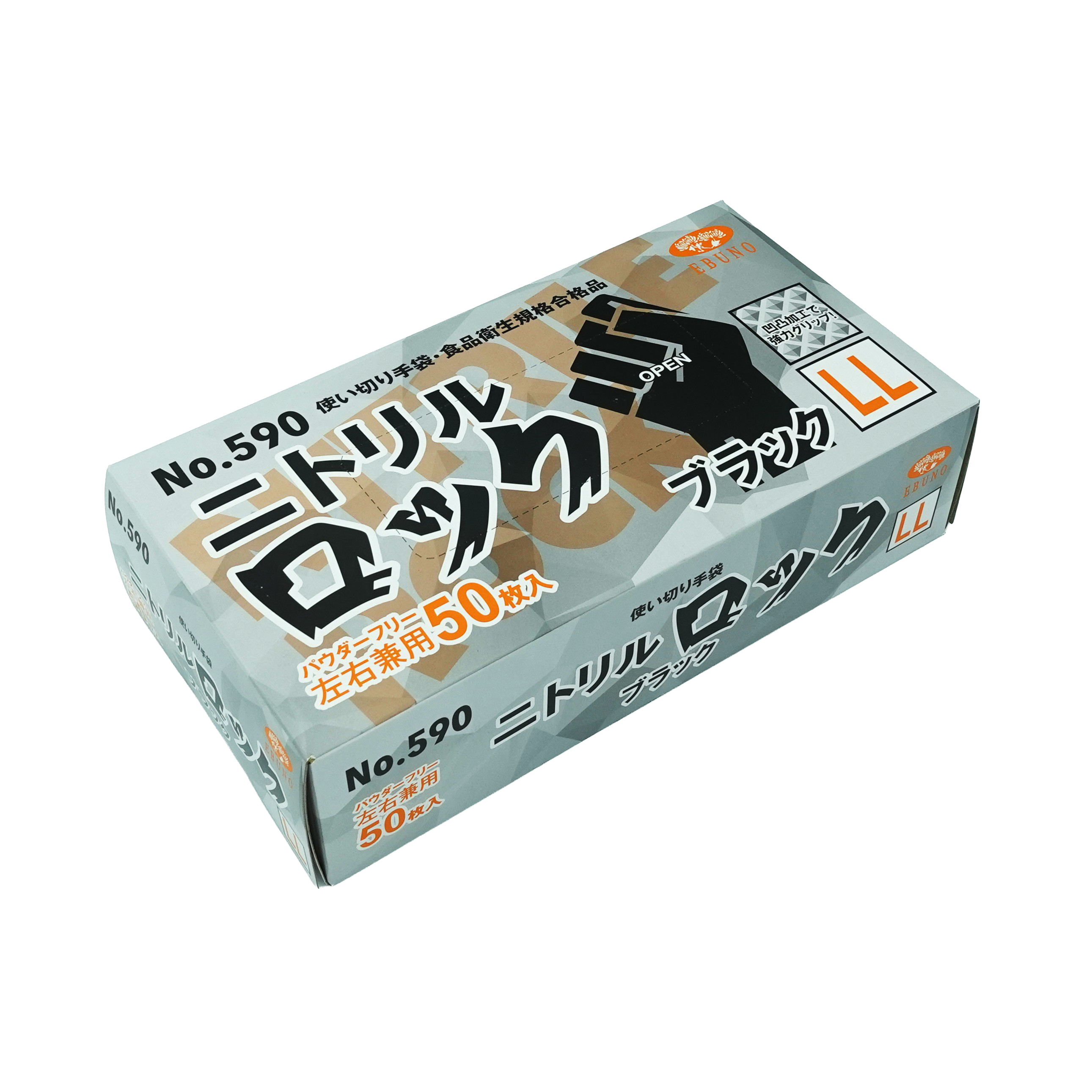 エブノ#590ニトリルロック ブラック/PF(箱/50枚入) LL