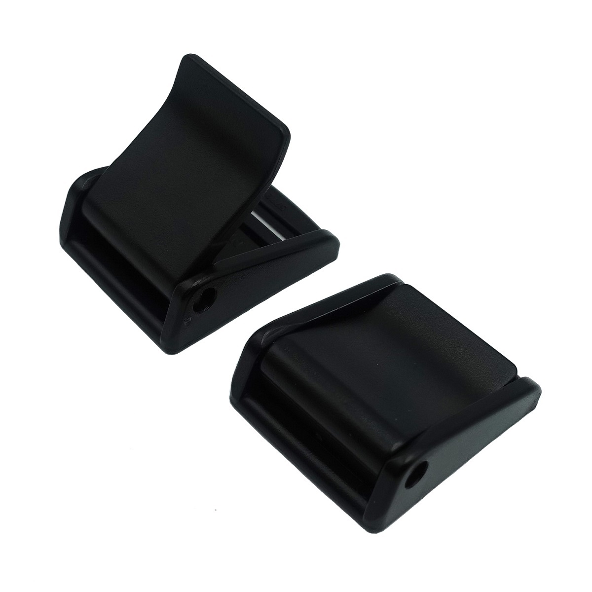 テープやベルトなどを通して、物を固定したりするときに使う樹脂製のカムバックルです。