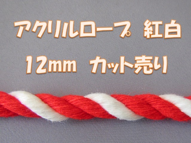 アクリルロープ紅白 カット売り 12mm(クリックポスト便可)