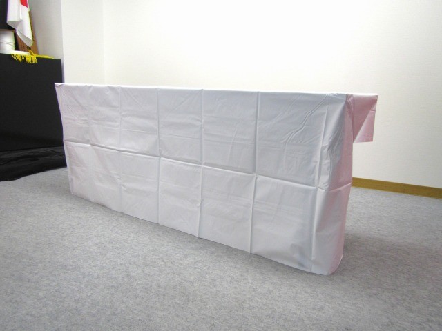 ビニールテーブルクロス(ボックスタイプ)450巾用−白−タレ付(5枚入)イベント 簡易 使い捨て 薄手 無地 汚れ防止 張り付かない 軽量