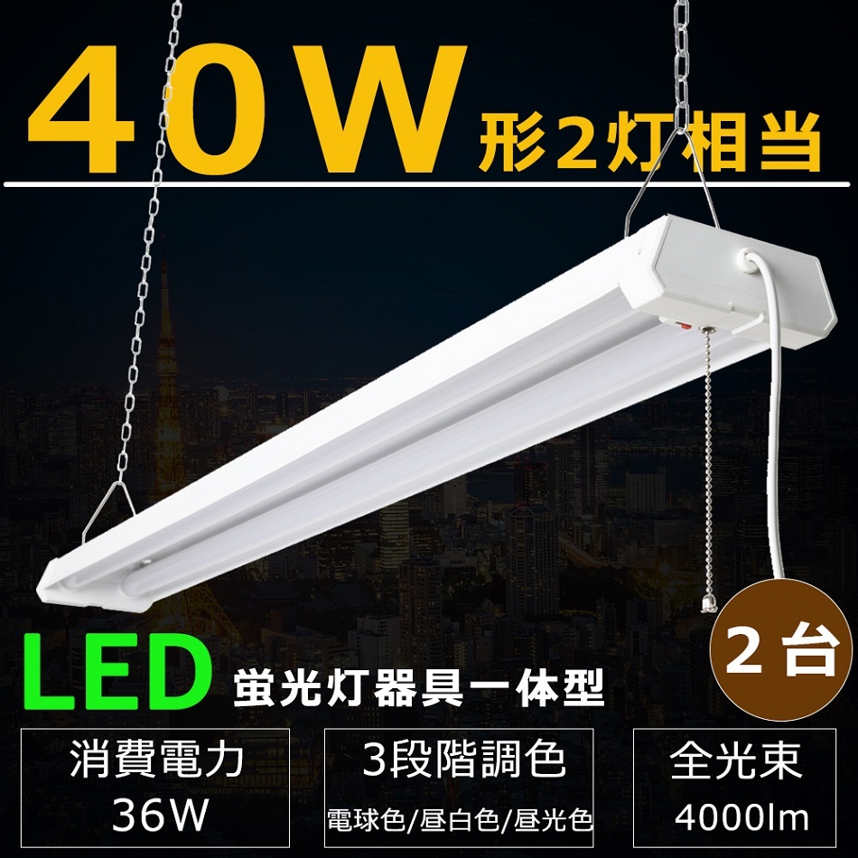 | 【特徴】 | ■ 【一体形LED照明&3段階調色】:軽量化にデザインされた一体式LEDベース照明。光色は暖色、自然色、白色から調節でき、雰囲気に合わせて自由に選択できます。 ■ 【工事不要】:付属のプラグコードをACコンセントに差込むだけで通電できるので、配線工事と難しい電気工事が不要なので、取付や取替えに手間かかりません。 ■ 【LED省エネ】:36Wの消費電力で一般形蛍光灯40W*2灯の明るさを提供でき、省エネ性に優れています。最大8台まで連結して使用できます。 ■ 【即時点灯&手元点灯】: LED一体式蛍光灯として、点灯遅延なし。電源を入れる瞬間、明るくなれます。プリスイッチ付きなので、ライトのオンオフは手元で済ませます。 ■ 【シーリング&つり下げ】:固定方法はつり下げ式とシーリング式の2種類あります。商品の陳列用、病院、学校、オフィス、工場な色々なシーンに適用します。 |