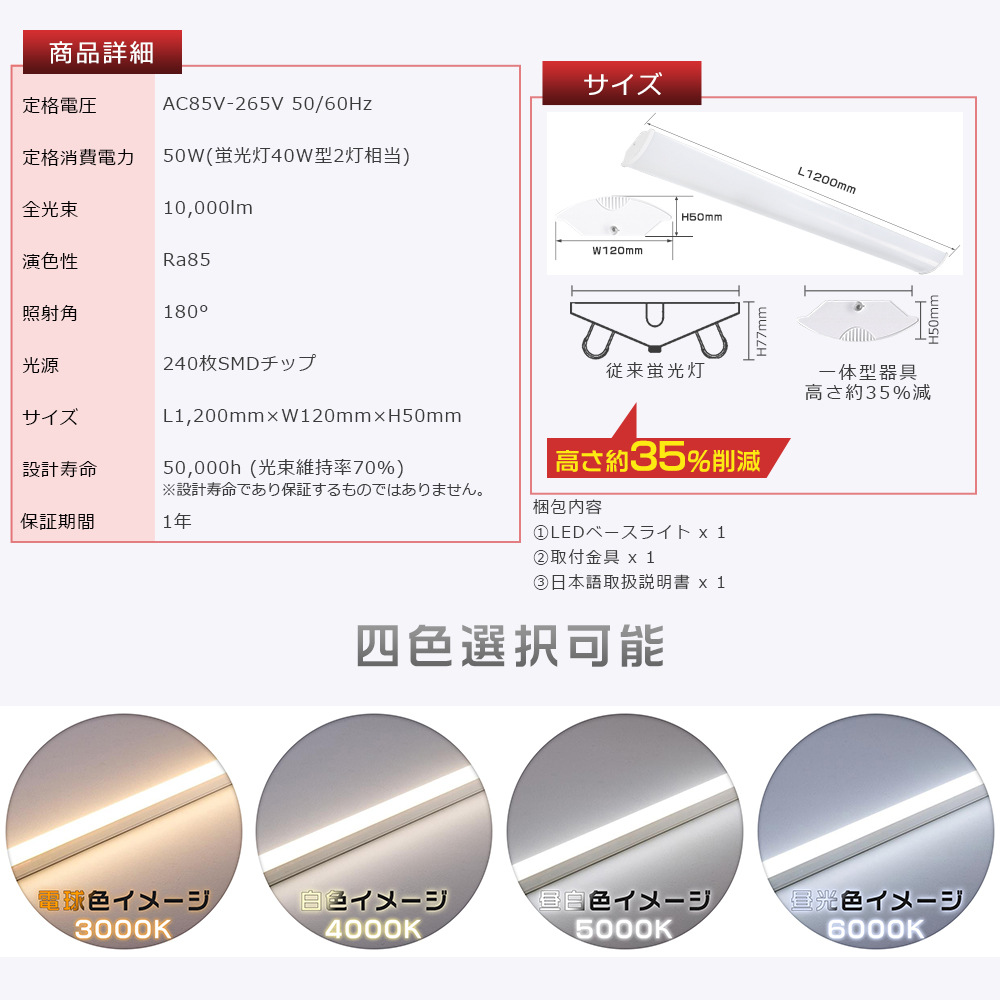 | ■色温度 電球色3000K/白色4000K/昼白色5000K/昼光色6000K |