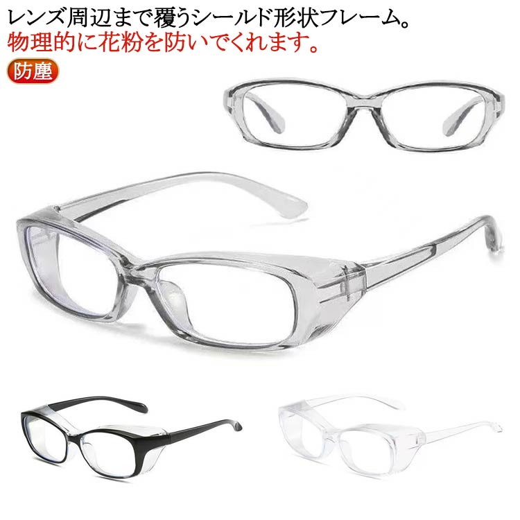 | レンズ周辺まで覆うシールド形状フレーム。物理的に花粉を防いでくれます。 花粉から目を守り!目立たない!見た目も前から見れば普通のメガネと変わりません。 クリアな視界で自然。目に当たる風が軽減できるし、軽いので付けてても疲れません。 アウトドア、自転車にも最適。 花粉の季節以外にも普通のPCメガネとして使うこともできるので便利です。 軽くて使いやすい!柄の部分のしなやかさは、顔へのフィット感を増します。 顔にあたる部分が柔らかい樹脂構造でしたので、皮膚に優しい製品でした。 花粉、UV、ブルーライト、黄砂、飛沫カット効果がある花粉眼鏡。 | |