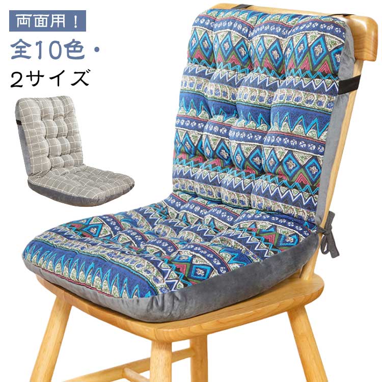 | 両面用! 全10色・2サイズ 背もたれまでカバーできるロングタイプの椅子用クッション 表地、裏地もお使いいただける両面使用可能タイプ。季節や気分に合わせて、使い方をお選びいただけます。 分厚いクッションを使用しているので長時間座っていてもお尻や腰が痛くなりにくいです。 椅子に結んで固定できるヒモとバックルが付いているのでズレる心配がありません。 リビングのイメージアップにも、車やカフェのインテリアとして、オフェスにの休憩にもお勧めです。 | |
