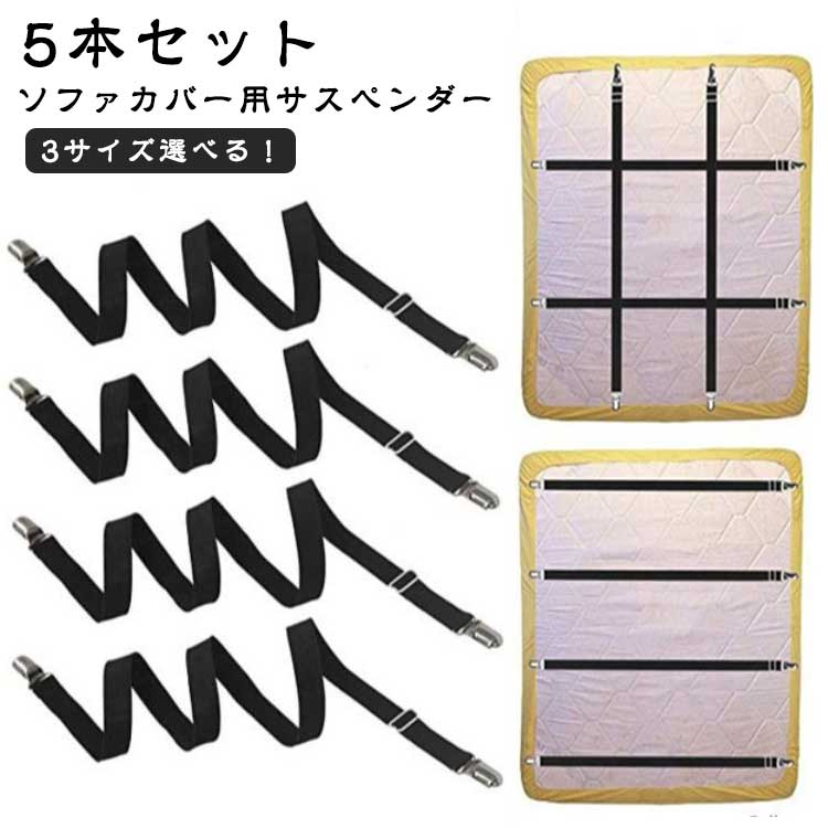 | 【ソファカバー用サスペンダー 5本セット】 【3サイズ選べる!】 マルチカバーをソファーの底部から背面でしっかり固定できるサスペンダー。 ソファーシーツのずれを防止する、シーツクリップ同色4本セットです。 金具で長さ調節ができ、強力クリップでがっちり挟むので、外れにくく安心です。 ベルトはゴム製なので、ソファやカバーのサイズに合わせてピッタリとフィットさせ、カバーのズレを防止します。 様々なマットレスやソファーにご使用いただけます。 | |
