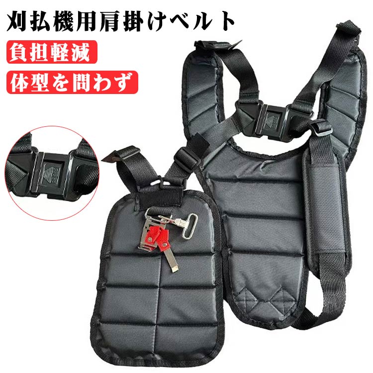 | 草刈り作業をもっと楽に!草刈り機や刈払機の重さを分散、身体への負担を軽減する、両肩タイプの草刈機バンドです。 【負担軽減】両肩式と腰当付きの設計により、重さを体全体に分散し、腰痛持ちの方も楽に作業を行えます。 【体型を問わず】アジャスター付いており、自分の体型によってサイズを自由に調整可能、男女を問わず、 体型を問わず、誰でも簡単に使うことができます。 【使用簡単】肩掛け式なので、ワンタッチバックルで簡単に装着できます。使用簡単。 【軽量】重量は約370g、体への負担が少なく、より安全で簡単な草刈りを実現します。肩掛けバンドの 持ち運びも便利! | |