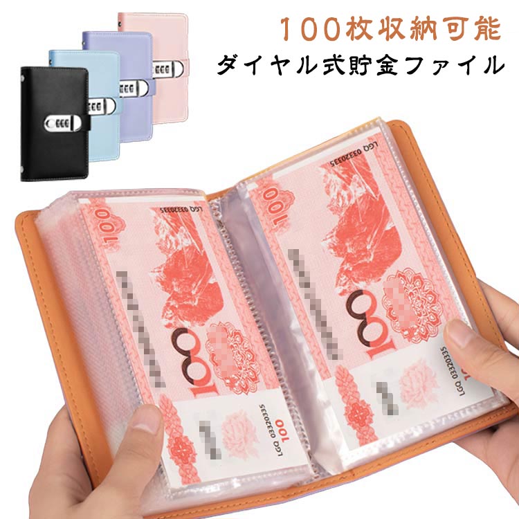 | 【ダイヤル式貯金ファイル】 【100枚収納可能】 透明なページだから中身がわかりやすい。 お札、コレクション、帳簿などの整理整頓に最適。 マグネット式の留め具で開閉しやすい。 表面は防水や汚れに強いPUレザーなので軽度の汚れは簡単に拭きとれます。 | |