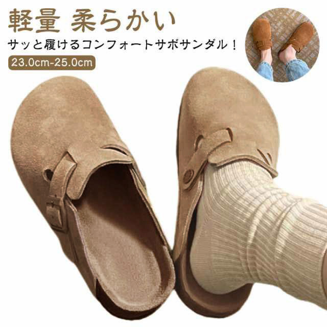 | サッと履けるコンフォートサボサンダル! コロンとした丸みのあるシルエットがとても可愛い♪ 柔らかい素材が足に優しく、とても歩きやすい。 甲ベルトで最適なフィット感に調整できます。踵がないタイプの靴ですが脱げる心配がありません。 | |