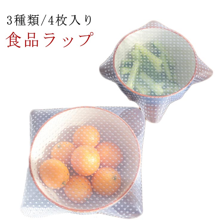 | 3種類/4枚入り 電子レンジ・冷蔵庫OK 繰り返し使えるエコアイテム伸びてくっつくシリコンラップ 液体もこぼれにくしい! 滑り止めとして カップの密封に 固いフタを開けるのに便利 | |