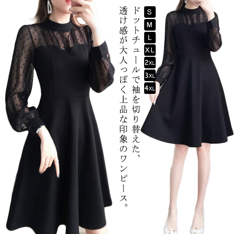 | ドットチュールで袖を切り替えた、透け感が大人っぽく上品な印象のワンピース。 フレアスカートのふんわりとしたシルエットで気になるヒップや太ももの体型カバーに。 ボディラインに沿うシルエットと程よい透け感が女性らしさをプラスしてくれます。 20代 30代 40代 50代 60代と幅広い世代でご利用頂けるデザインとなっています。 結婚式、披露宴、二次会、お呼ばれ、パーティー、発表会、司会、謝恩会などフォーマルな普段着にも幅広くご活躍いただけます。 | |