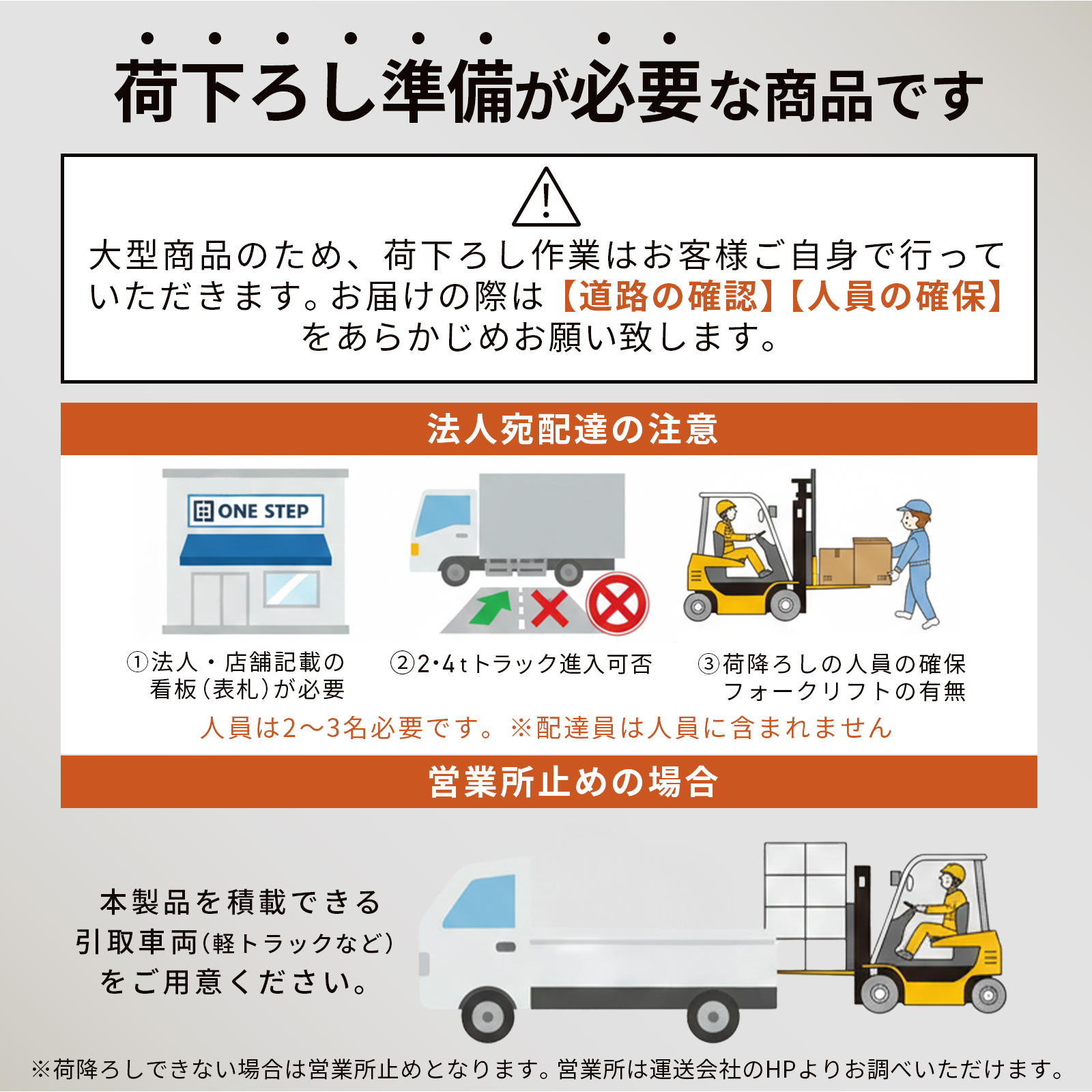 受け取りの際は【道路の確認】【人員の確保】を