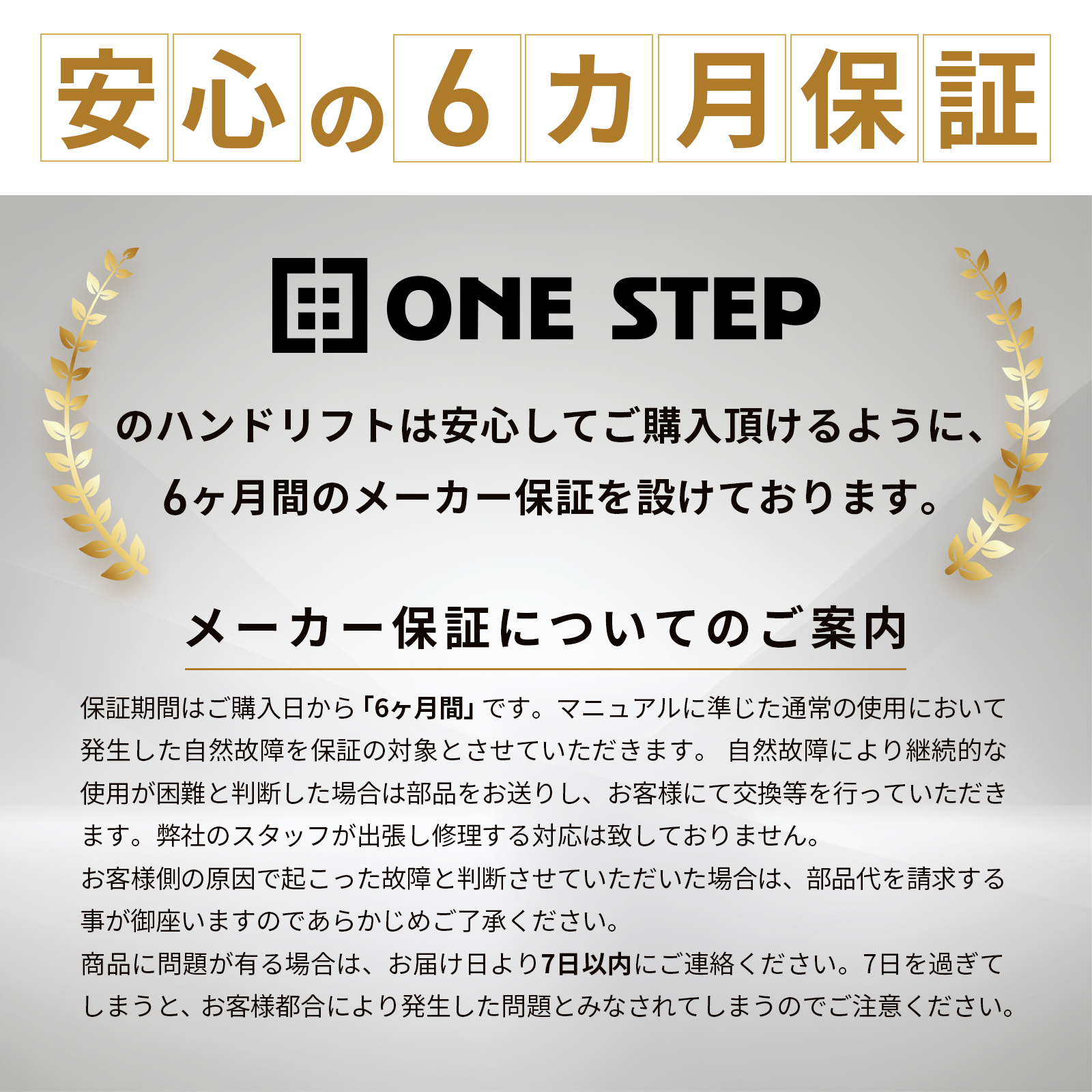 安心の6ヶ月保証当店ではご愛用していただく為、メーカー保証を設けております。