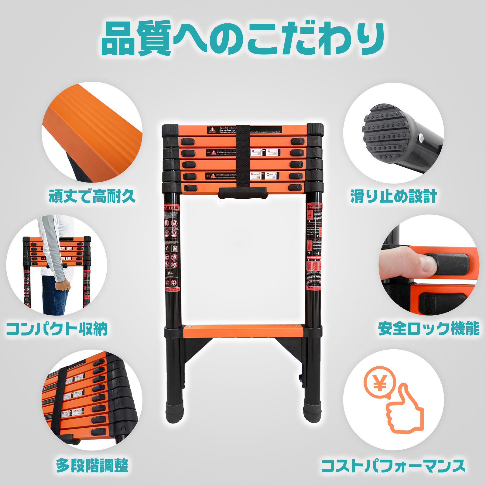 コンパクト 持ち運び容易 屋内 屋外 梯子 多機能 スチールスチール製の丈夫な伸縮ハシゴ、屋外の作業に最適、コンパクトに折りたたんで収納・持ち運びに便利、