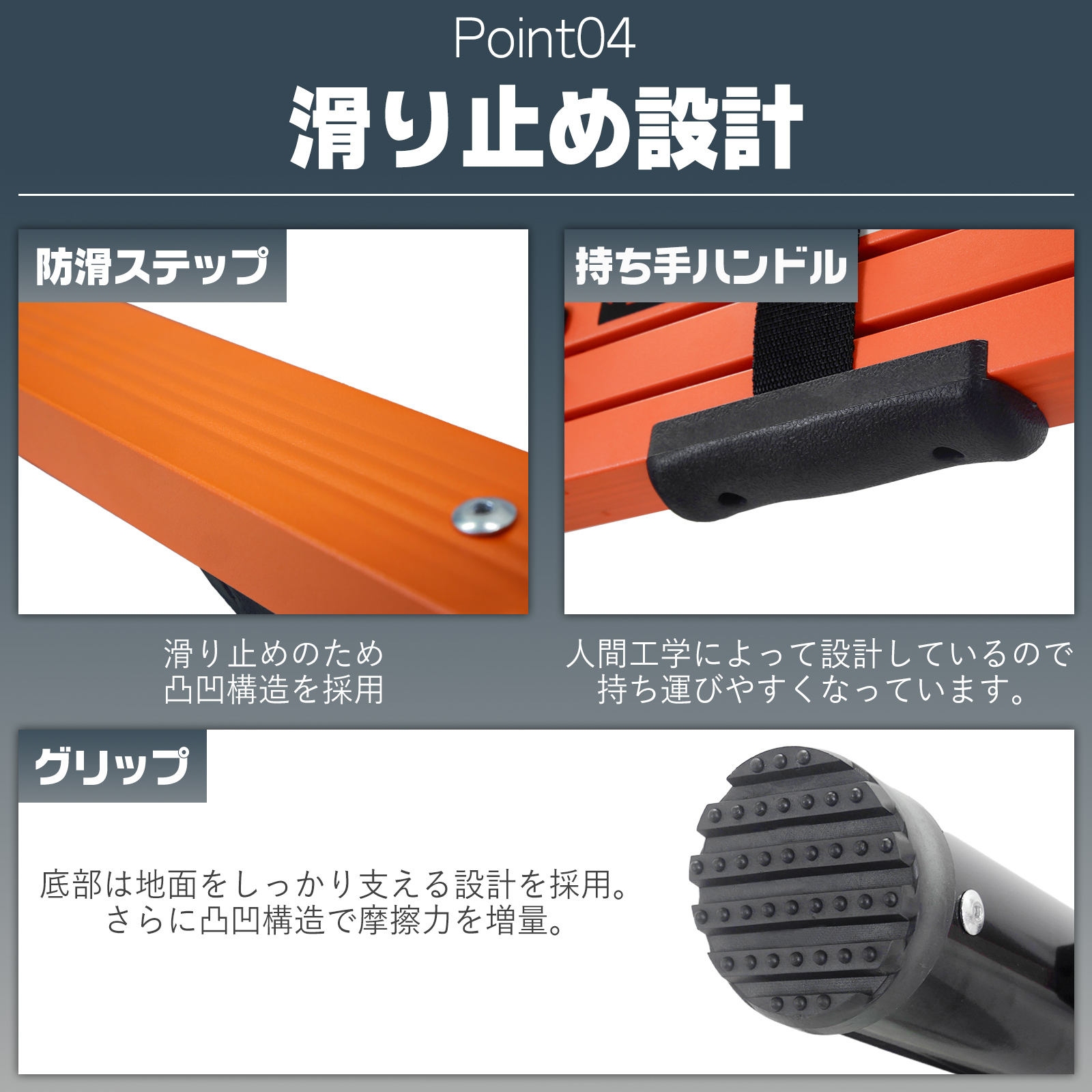 滑り止め設計防滑ステップ:滑り止めの為の凸凹構造を採用