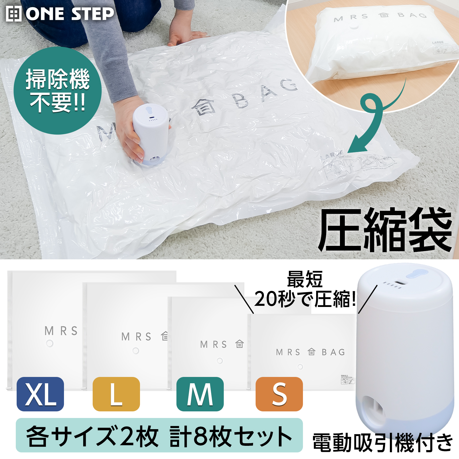 圧縮袋 全サイズ各2枚 電動吸引機 セット バルブ式 真空圧縮収納 衣類 毛布 ダブルジッパー