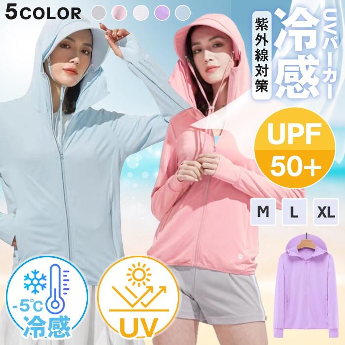 UVパーカー -5°C レディース 長袖 ラッシュガード UVカット アウター 接触冷感 指穴 つば 取り外し あご紐 トップス 体型カバー 薄手 吸湿 速乾 通気日焼け防止 服 紫外線対策 夏