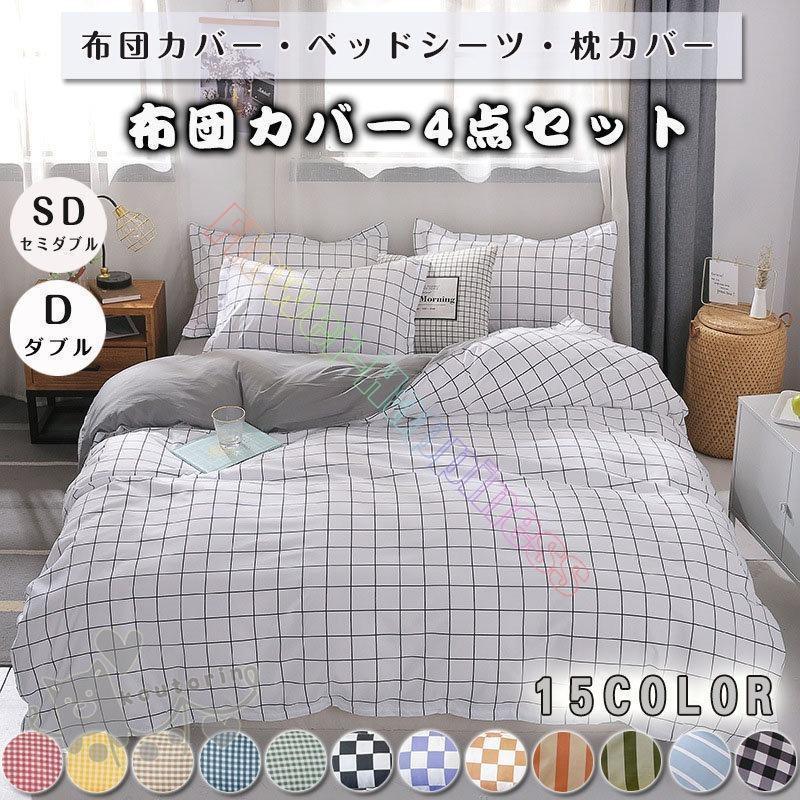 ベッドカバー 布団カバー セット セミダブル ダブル ベッドカバー ベッドシーツ 掛け布団カバー チェック柄 ストライプ ボーダー 起毛 寝具セット