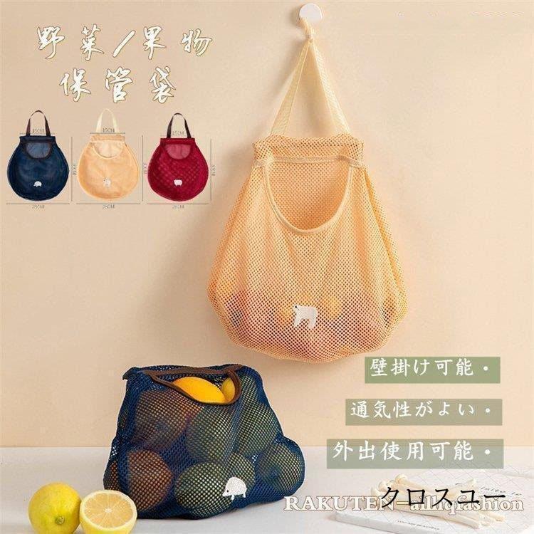 野菜ストッカー 袋 果物保存 大容量 収納バッグ 外出可能 バッグ かわいい 壁掛け 吊るせる 洗える メッシュ 果物 お買い物 実用