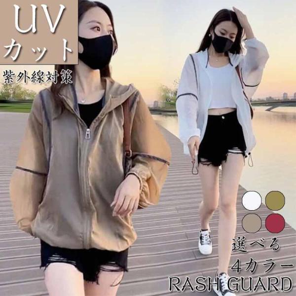 ラッシュガード レディース UVカットパーカー ラッシュパーカー 紫外線カット UVカット ひんやり 薄手 長袖 透けない フード付き 旅行 運動