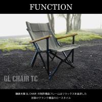 特徴鎌倉天幕 GL CHAIRの特許フレームは、収束タイプのチェアで肘掛けがある高強度なクランク構造。