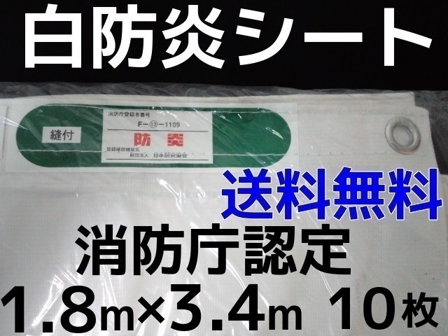 消防庁認定 輸入白防炎シート 1.8m×3.4m 10枚入 送料無料(本州/四国/九州)「同梱/キャンセル/変更/返品不可」