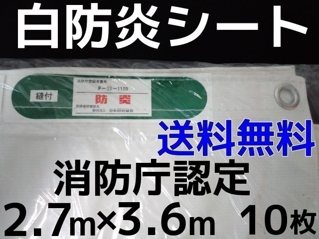 消防庁認定 輸入白防炎シート 2.7m×3.6m 10枚入 送料無料(本州/四国/九州)「同梱/キャンセル/変更/返品不可」