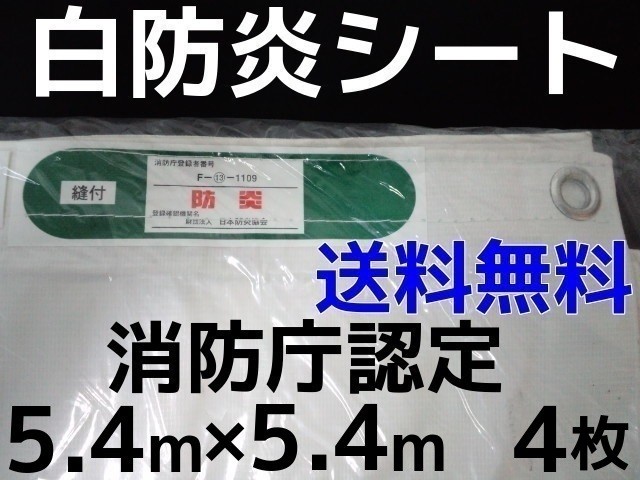 消防庁認定 輸入白防炎シート 5.4m×5.4m 4枚入 送料無料(本州/四国/九州)「同梱/キャンセル/変更/返品不可」