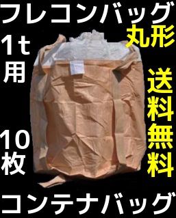 フレコンバッグ 1t用 丸型 1100φ×1100(mm) 10枚入 反転ベルト(反転フック)付 土のう袋 送料無料(本州/四国/九州) #002丸型「同梱/キャンセル/変更/返品不可」
