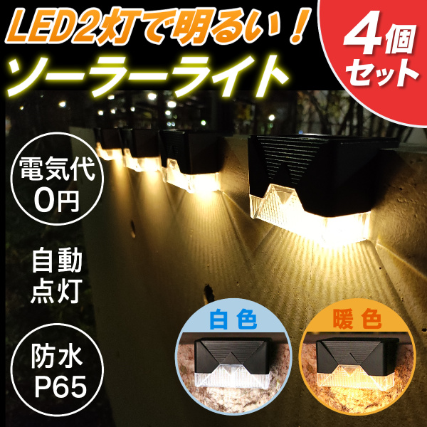 ソーラーライト ガーデン 屋外 おしゃれ 防水 LED 手摺り 階段 塀 自動点灯消灯 明るい 明るさセンサー 防犯 ライトアップ