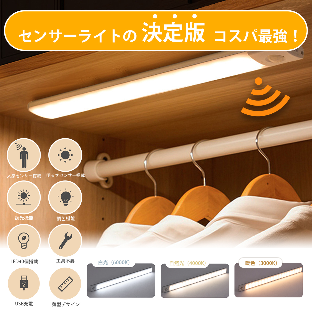 人感センサーライト 室内 充電式 led 20cm USB 屋内 足元灯 常夜灯 ナイトライト 玄関 クローゼット 照明 感知式 マグネット 磁石 非常灯 明暗センサー