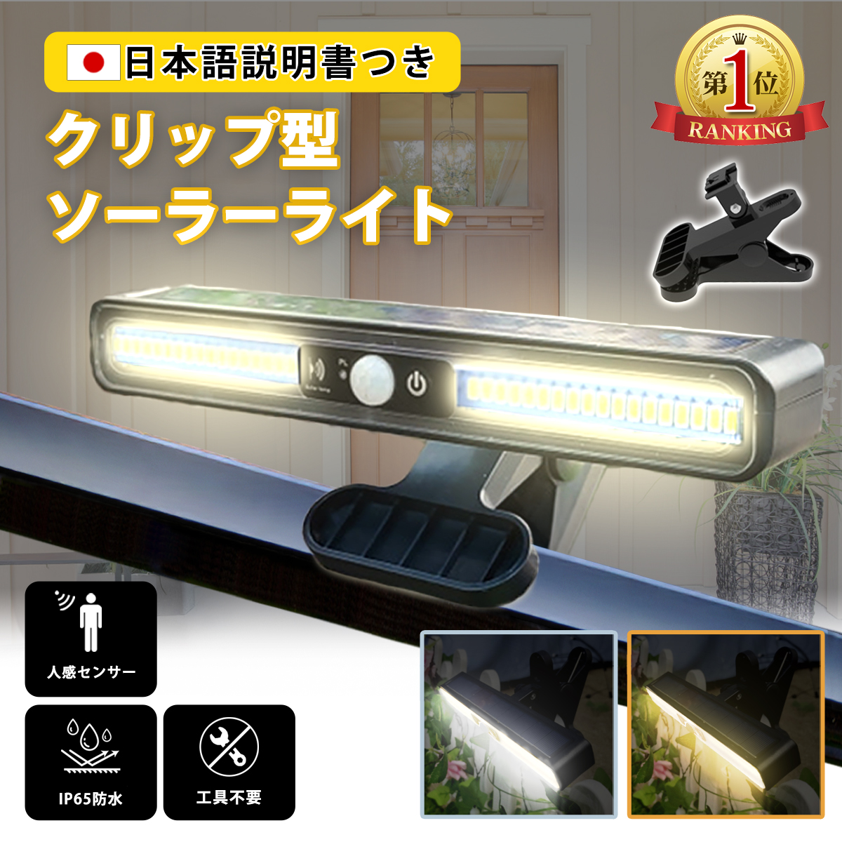 クリップ式 ソーラーライト 人感センサーライト センサーライト 人感センサー クリップライト ソーラー充電 屋外用 防水ライト